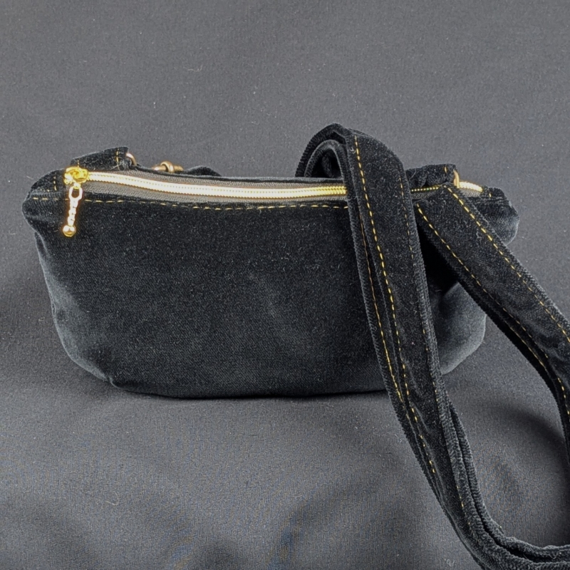 Juste assez grand pour y glisser un téléphone, un étui souple à lunettes, un porte monnaie, paquet de mouchoirs et petit nécessaire féminin. Une poche zippée permet d'y glisser les papiers.
