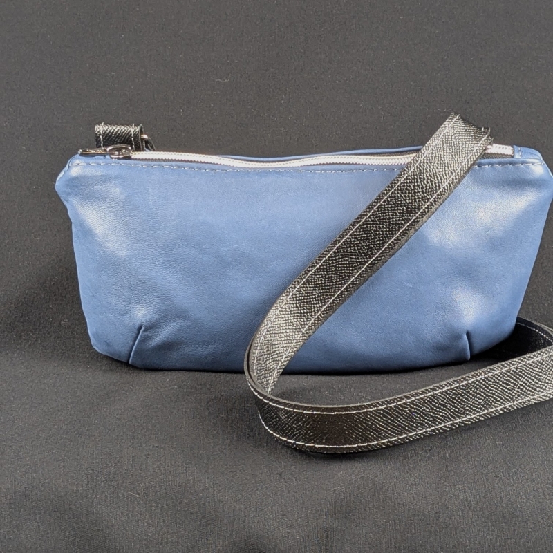 Juste assez grand pour y glisser un téléphone, un étui souple à lunettes, un porte monnaie, paquet de mouchoirs et petit nécessaire féminin. Une poche zippée permet d'y glisser les papiers.