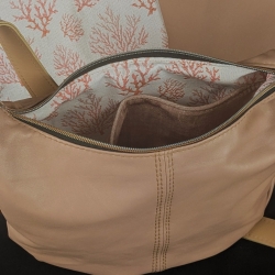 Une magnifique rencontre entre ce cuir souple et ce tissu d'ameublement finement tissé.