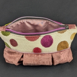 Extérieur en tissu d'ameublement et velours, intérieur en taffetas.